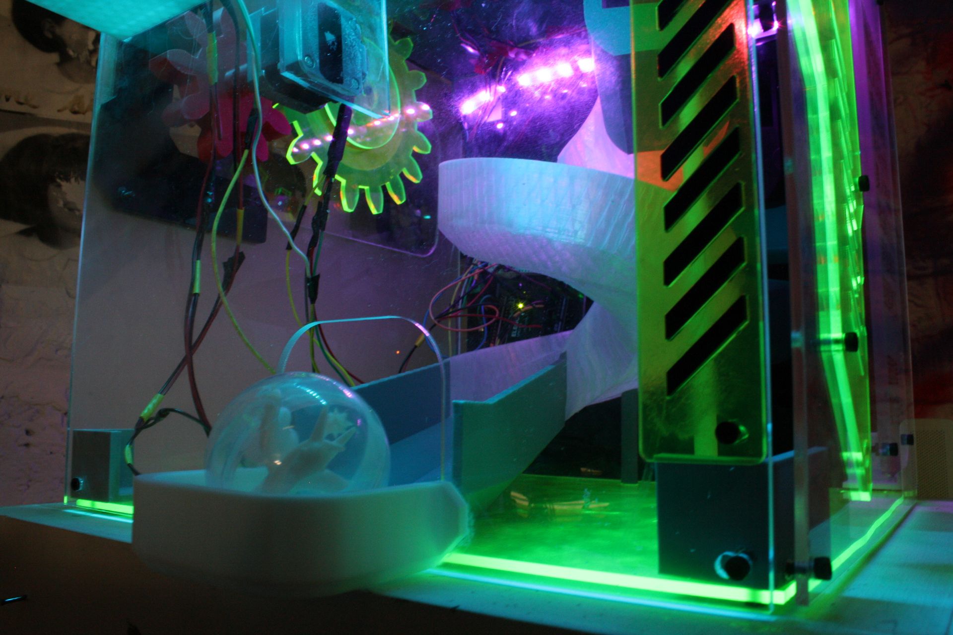 An interactive gachapon machine that dispenses sculptural toys featuring an embedded videogame.